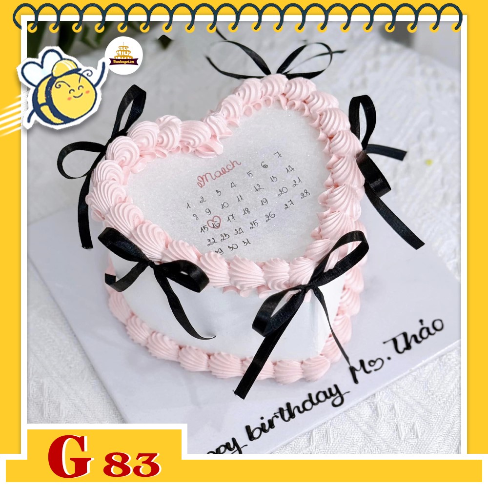 Bánh kem đẹp L52 trái tim vẽ lịch đơn giản mà ý nghĩa