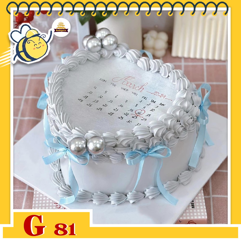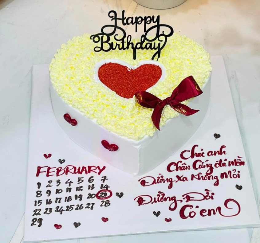 Bánh kem đẹp L52 trái tim vẽ lịch đơn giản mà ý nghĩa