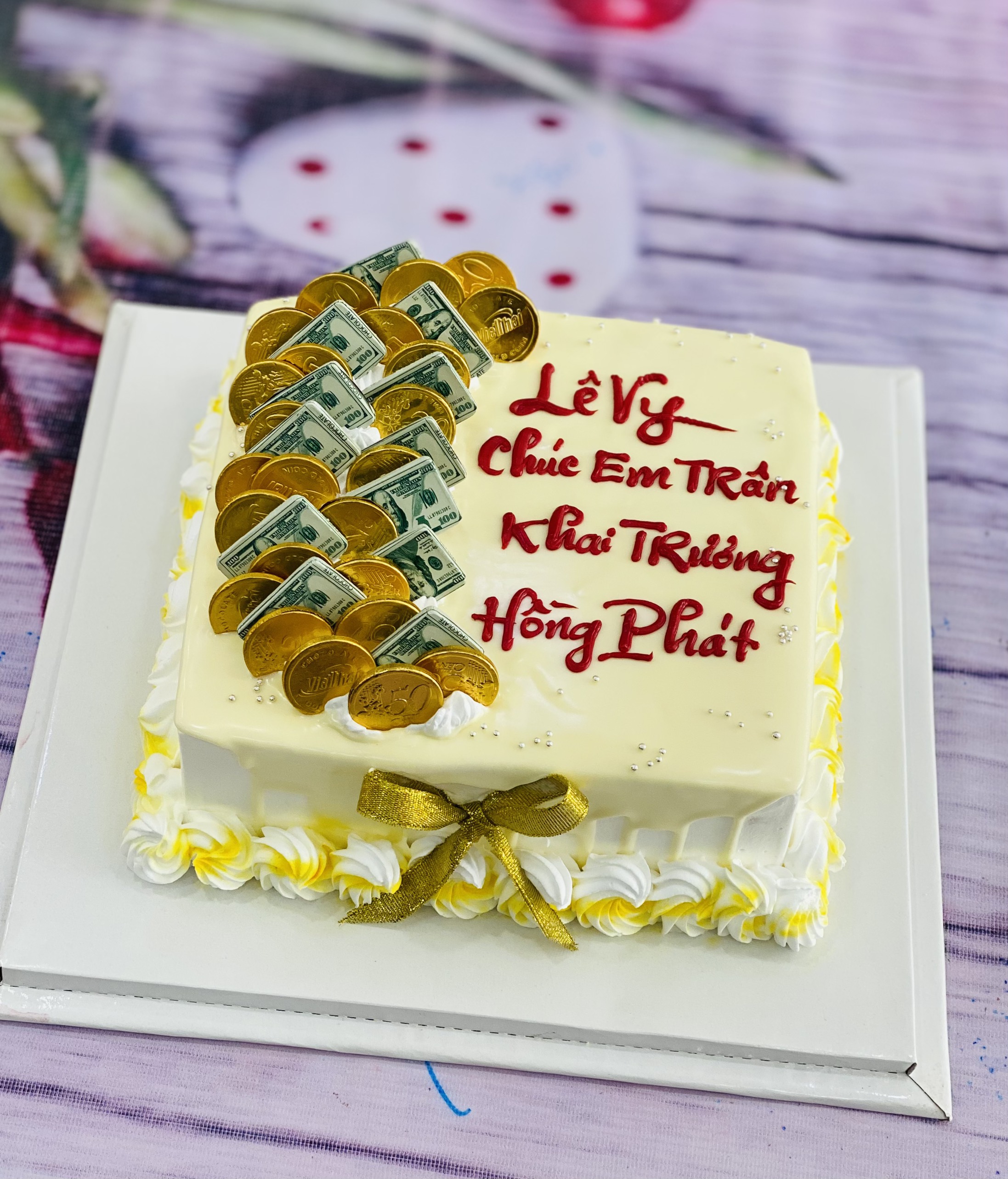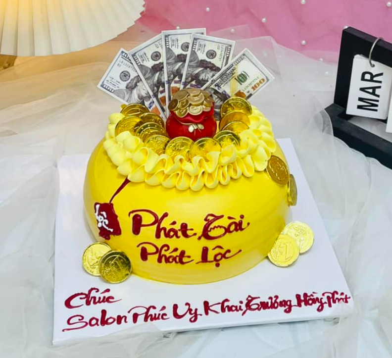 Bánh kem hũ vàng đẹp mắt, sống động chúc mừng khai trương tại Gò Vấp