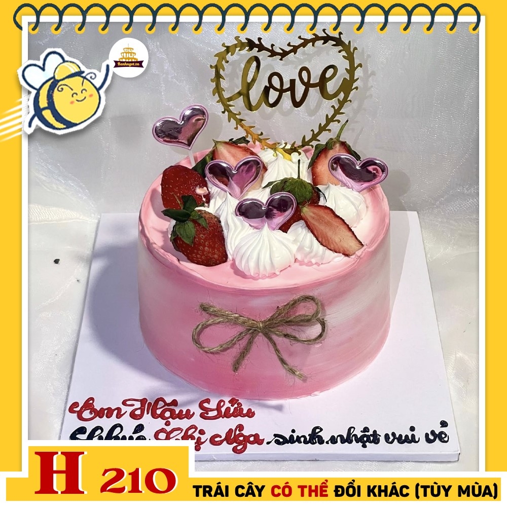 Bánh kem sinh nhật H210 hồng lãng mạn trang trí trái tim và dây thừng