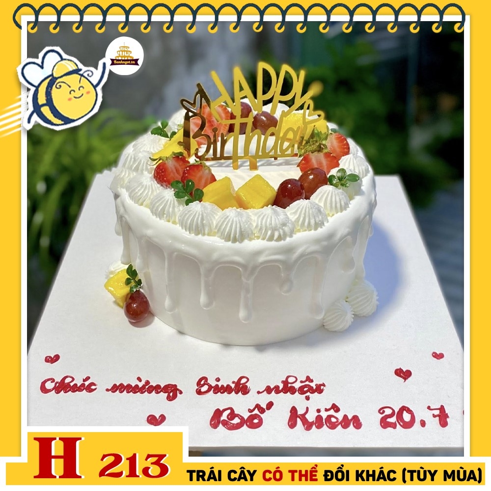 Bánh kem sinh nhật H213 kem chảy trang trí dâu và hoa quả mix độc đáo