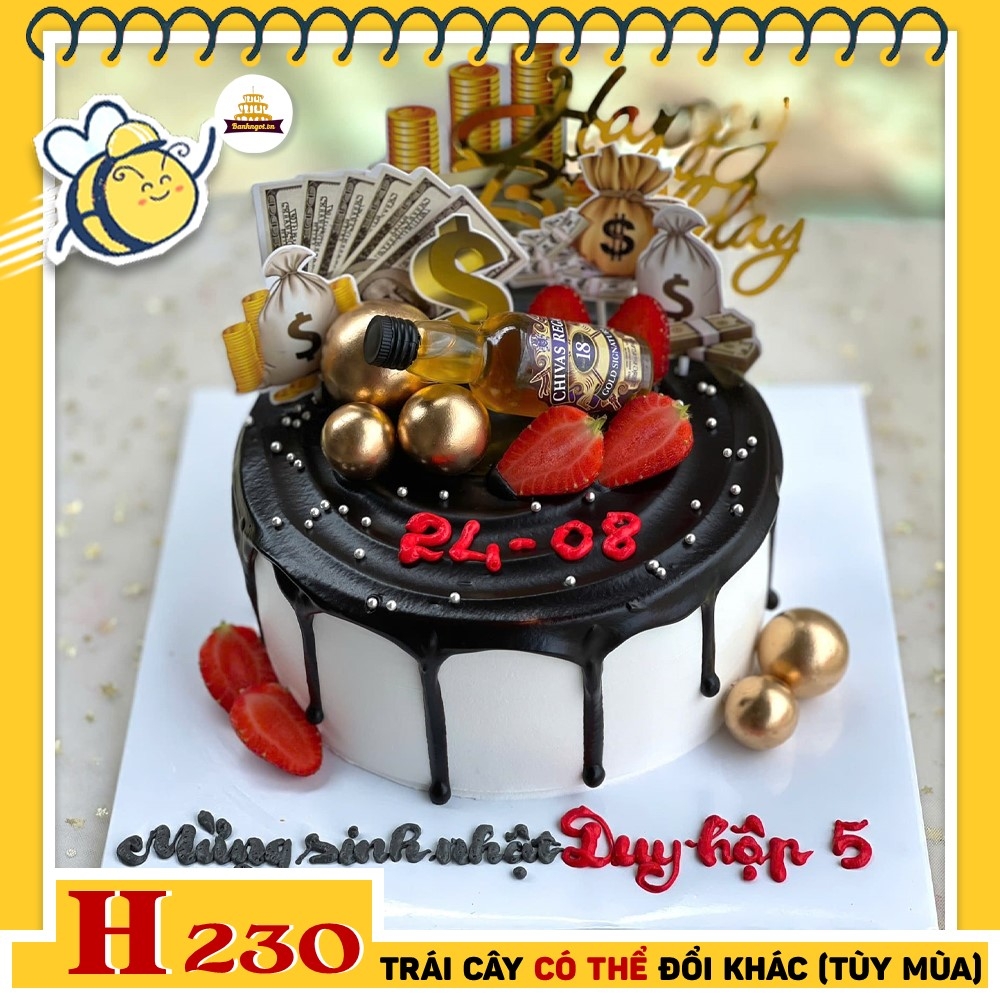 Bánh kem sinh nhật H230 tặng bạn trai, chồng trang trí rượu tiền đô