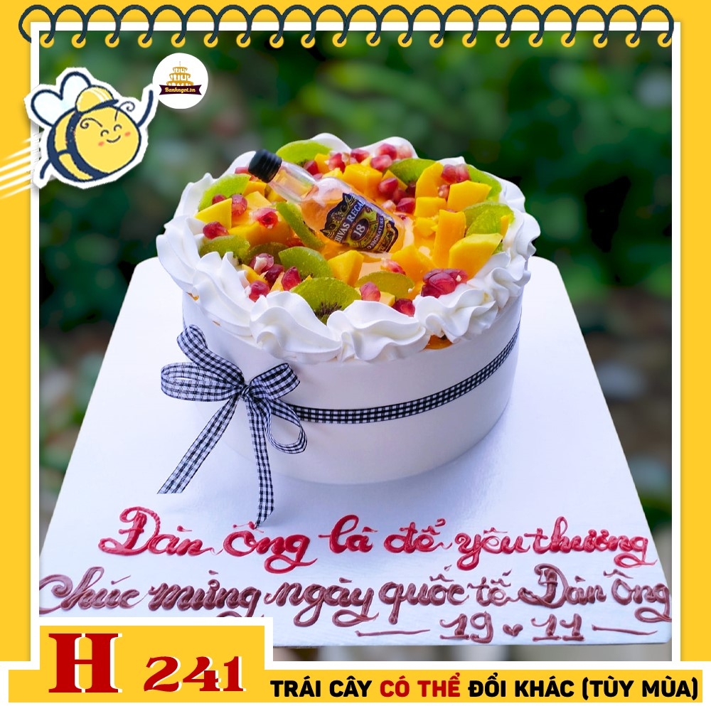 Bánh kem H241 – Bánh kem trái cây rượu, món quà độc đáo và ý nghĩa dành cho phái mạnh. Bạn đang tìm kiếm một chiếc bánh sinh nhật thật đặc biệt để tặng người đàn ông quan trọng trong đời? Mẫu bánh H241 với thiết kế trái cây tươi mát và phụ kiện rượu tây độc đáo chính là lựa chọn hoàn hảo. Chiếc bánh này không chỉ ngon miệng mà còn thể hiện sự mạnh mẽ, cá tính của người nhận. Hãy đặt bánh ngay để dành tặng anh ấy một món quà bất ngờ nhé!