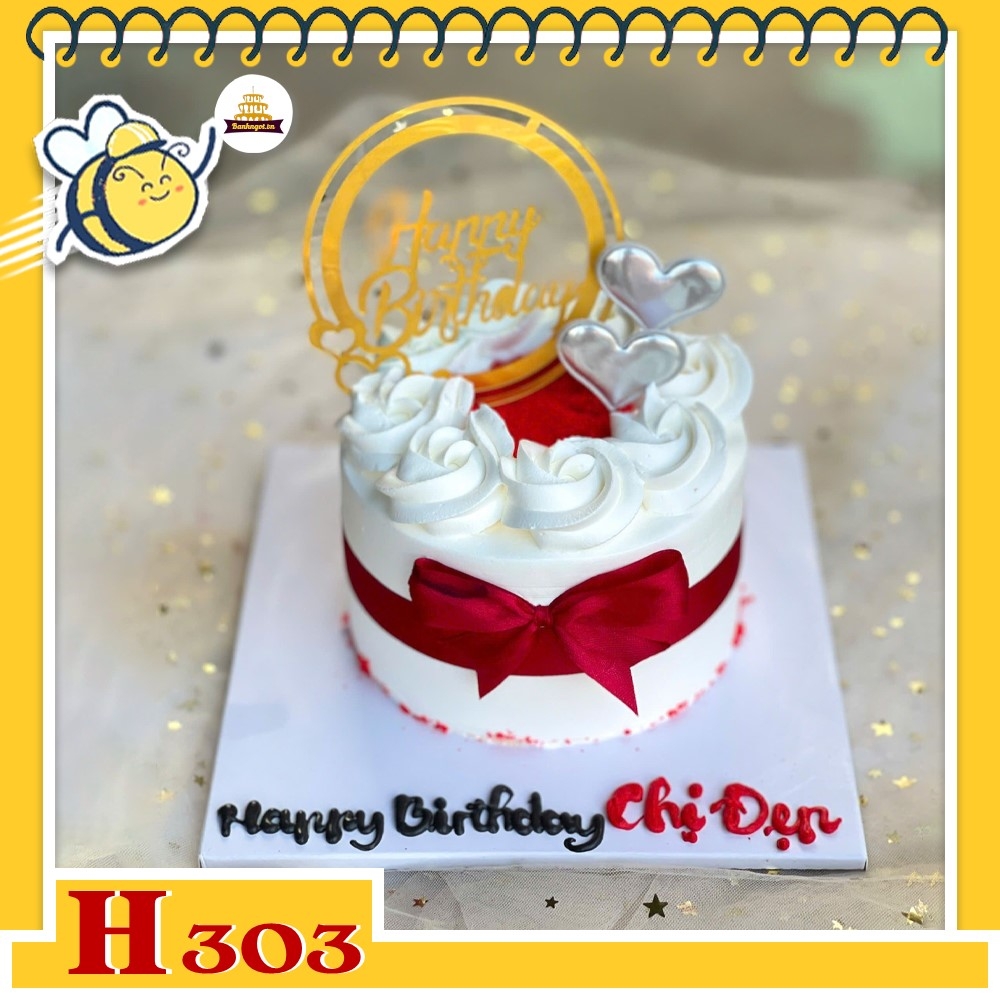 Bánh kem sinh nhật H303 tình yêu trái tim rắc bột đỏ dễ thương