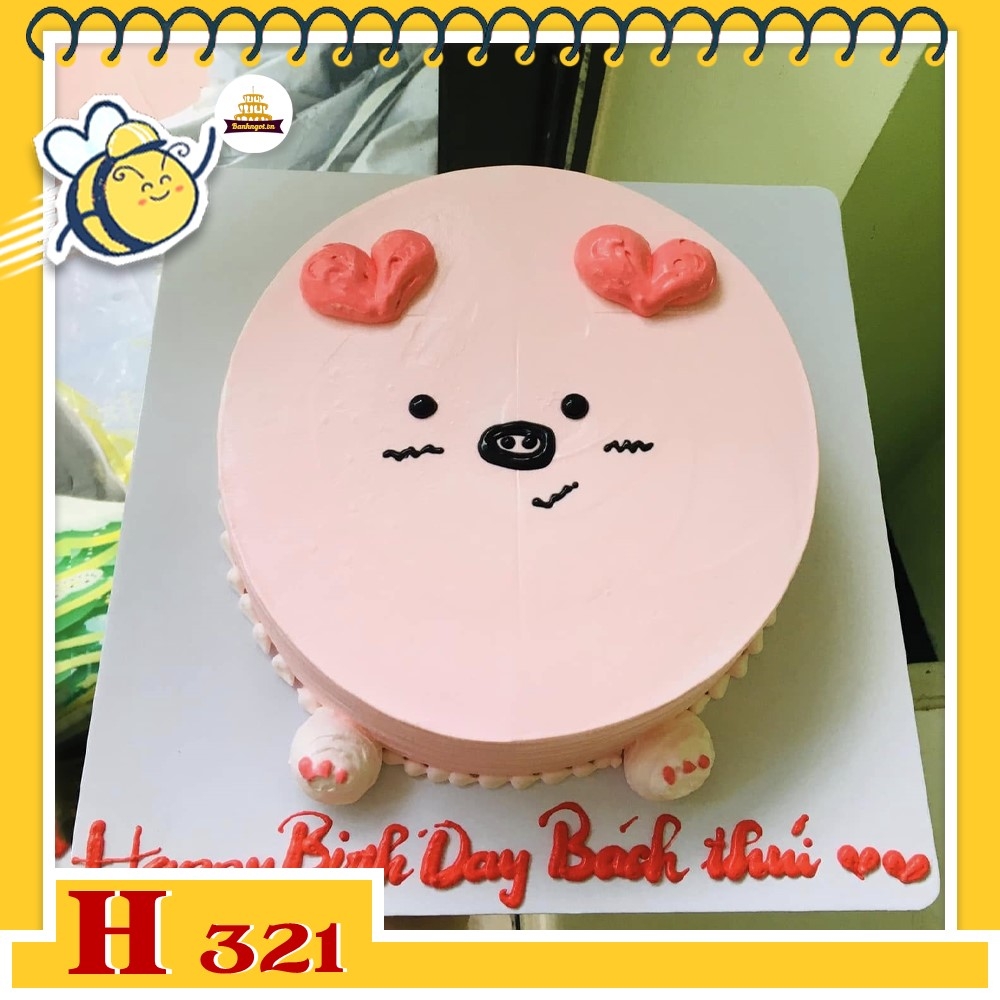 Bánh kem sinh nhật H321 trái tim màu hồng nhạt phụ kiện chân heo ngộ nghĩnh