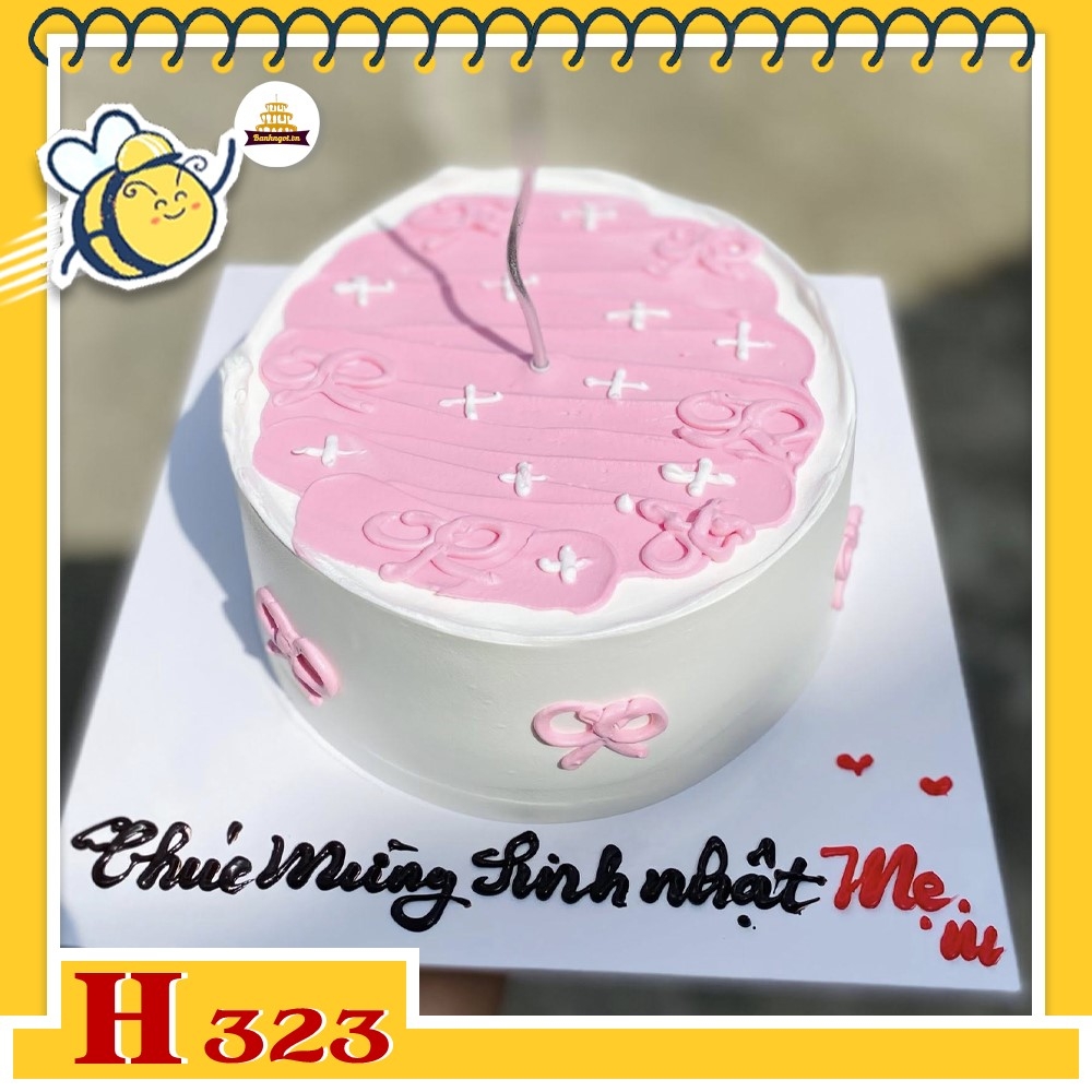Bánh kem sinh nhật H323 cho mẹ màu hồng nhạt hình thắt nơ
