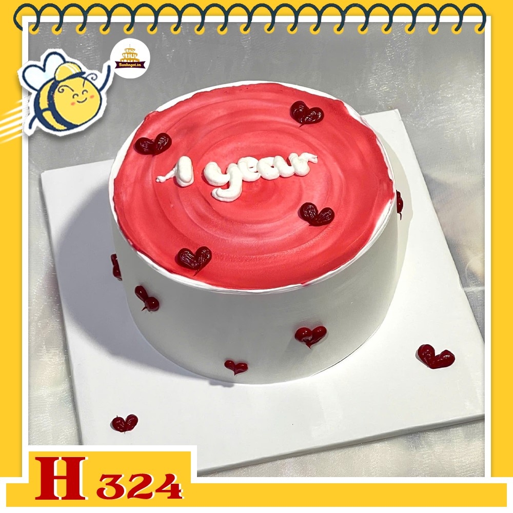 Bánh kem sinh nhật H324 màu trắng đỏ hình trái tim kỷ niệm