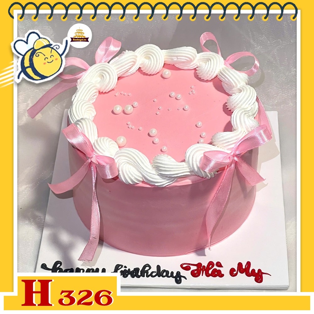 Bánh kem sinh nhật H326 màu hồng công chúa thắt nơ ruy băng
