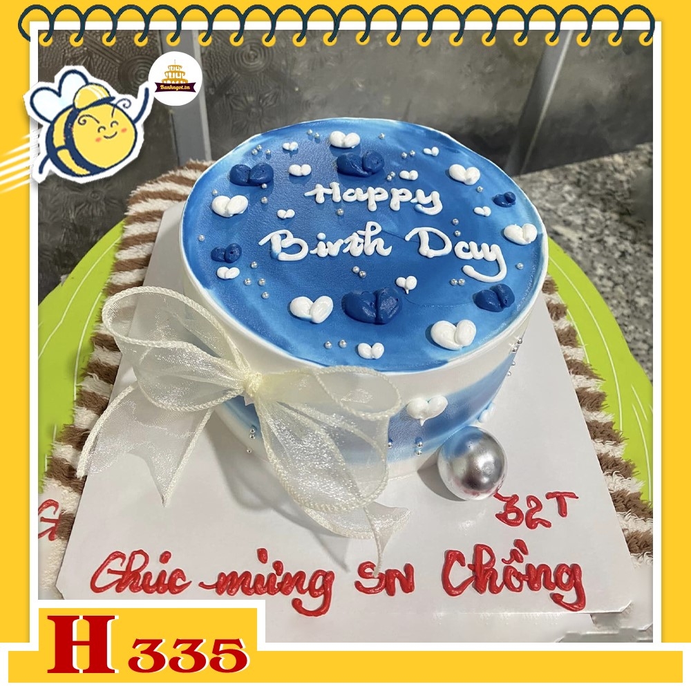 Bánh kem sinh nhật H335 tặng chồng màu xanh nước biển viền kem trắng