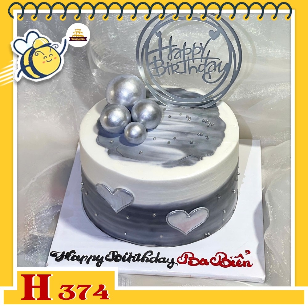 Bánh kem sinh nhật H374 marble xám trắng trang trí cầu bạc tặng nam giới