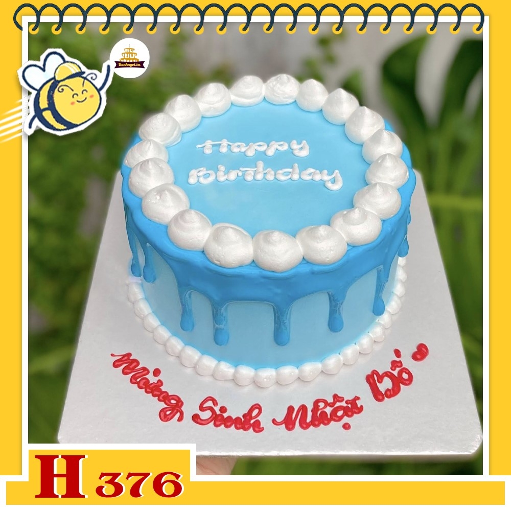 Bánh kem sinh nhật H376 phong cách chảy kem màu xanh tươi sáng tặng bố yêu