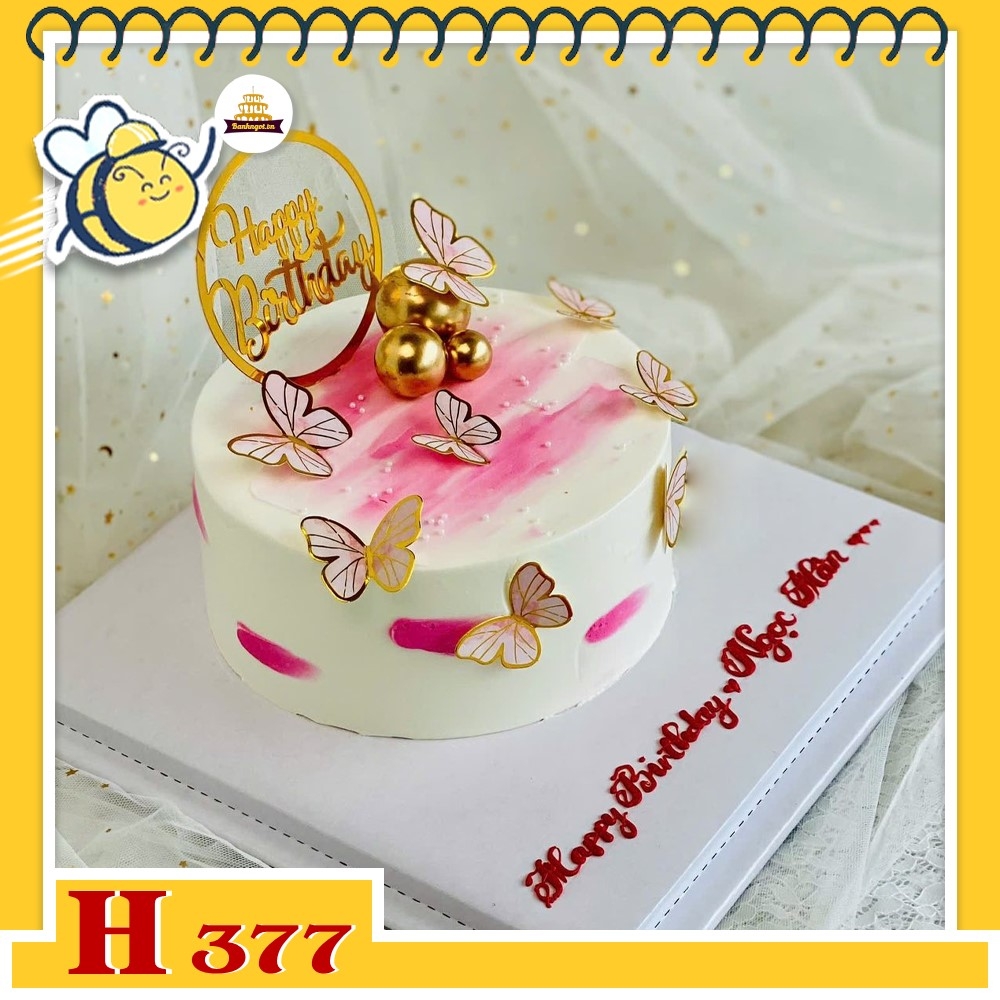 Bánh kem sinh nhật H377 bướm hồng sang chảnh kết hợp cầu vàng lấp lánh