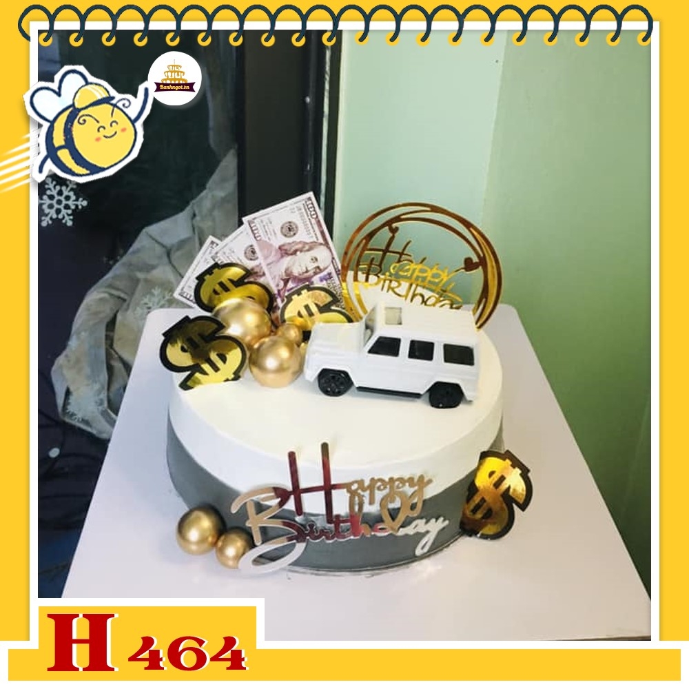 Bánh kem sinh nhật H464 tặng sếp nam xe hơi và phụ kiện đô la tài lộc