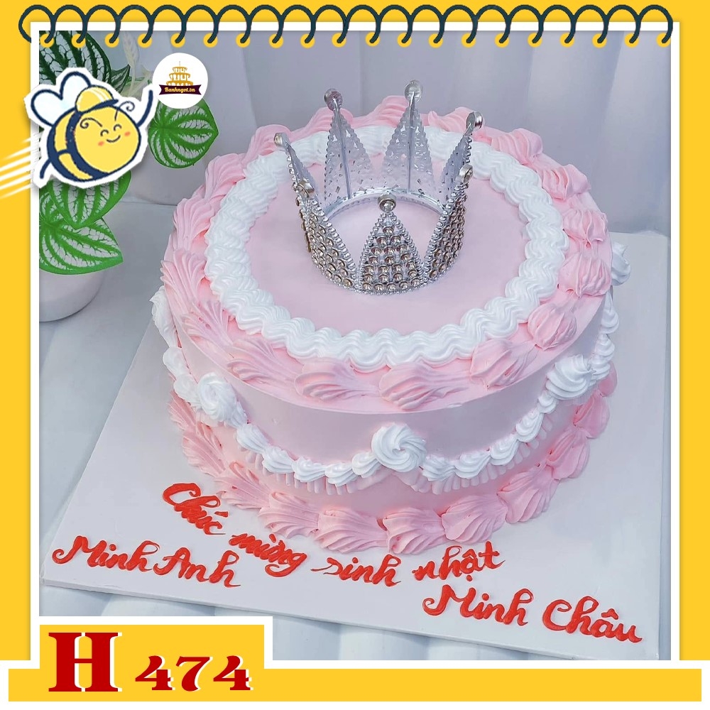 Bánh kem sinh nhật H474 công chúa hồng trắng viền sóng cùng vương miện