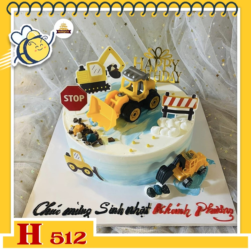 Bánh kem sinh nhật H512 trang trí máy xúc bé trai cool ngầu