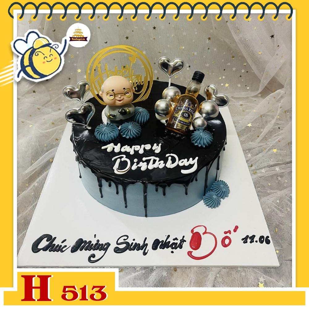 Bánh kem sinh nhật H513 chảy socola phụ kiện ông già rượu whiskey