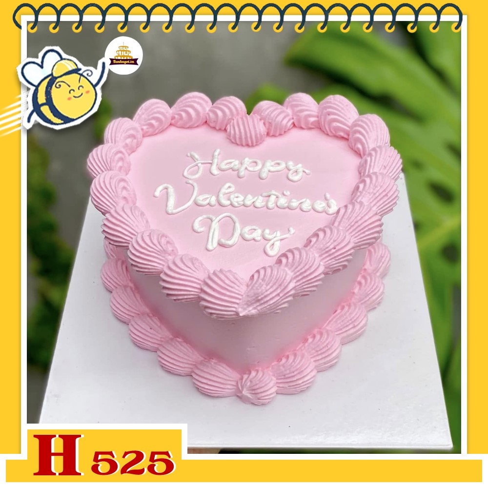 Bánh kem sinh nhật H525 trái tim tông hồng pastel lãng mạn