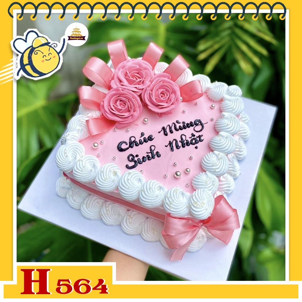 Bánh kem sinh nhật H564 trái tim màu hồng nhạt duyên dáng
