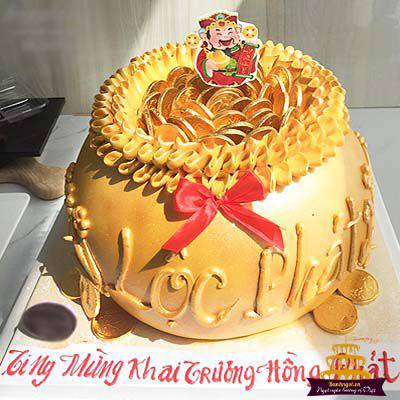 Ảnh bánh sinh nhật Sông Công hình hũ vàng ấn tượng độc lạ
