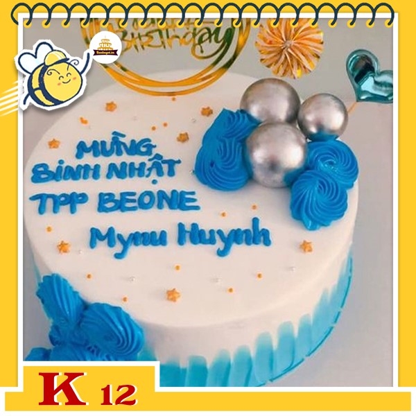 Bánh kem tặng khách hàng K12 nền trắng điểm thêm xanh dương và khung HPBD hài hòa đẹp mắt