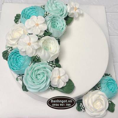 Mẫu bánh kem đẹp D62 nền xanh mây trời siêu xinh