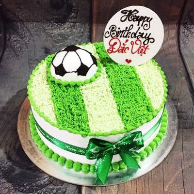 Bánh kem P76 vẽ hình sân cỏ bóng đá cùng những hình dán em bé trai vui vẻ