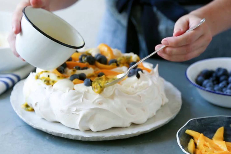 Loại bánh lòng trắng trứng này hấp dẫn mọi thực khách nhất bởi bên trên được phủ một lớp kem và trang trí bằng các loại cái cây làm tăng thêm sức hút của chiếc bánh. Chiếc bánh tuy đơn giản, nhưng đòi hỏi người nghệ nhân có mắt thẩm mỹ để trang trí chiếc bánh thêm ấn tượng và bắt mắt nhất.