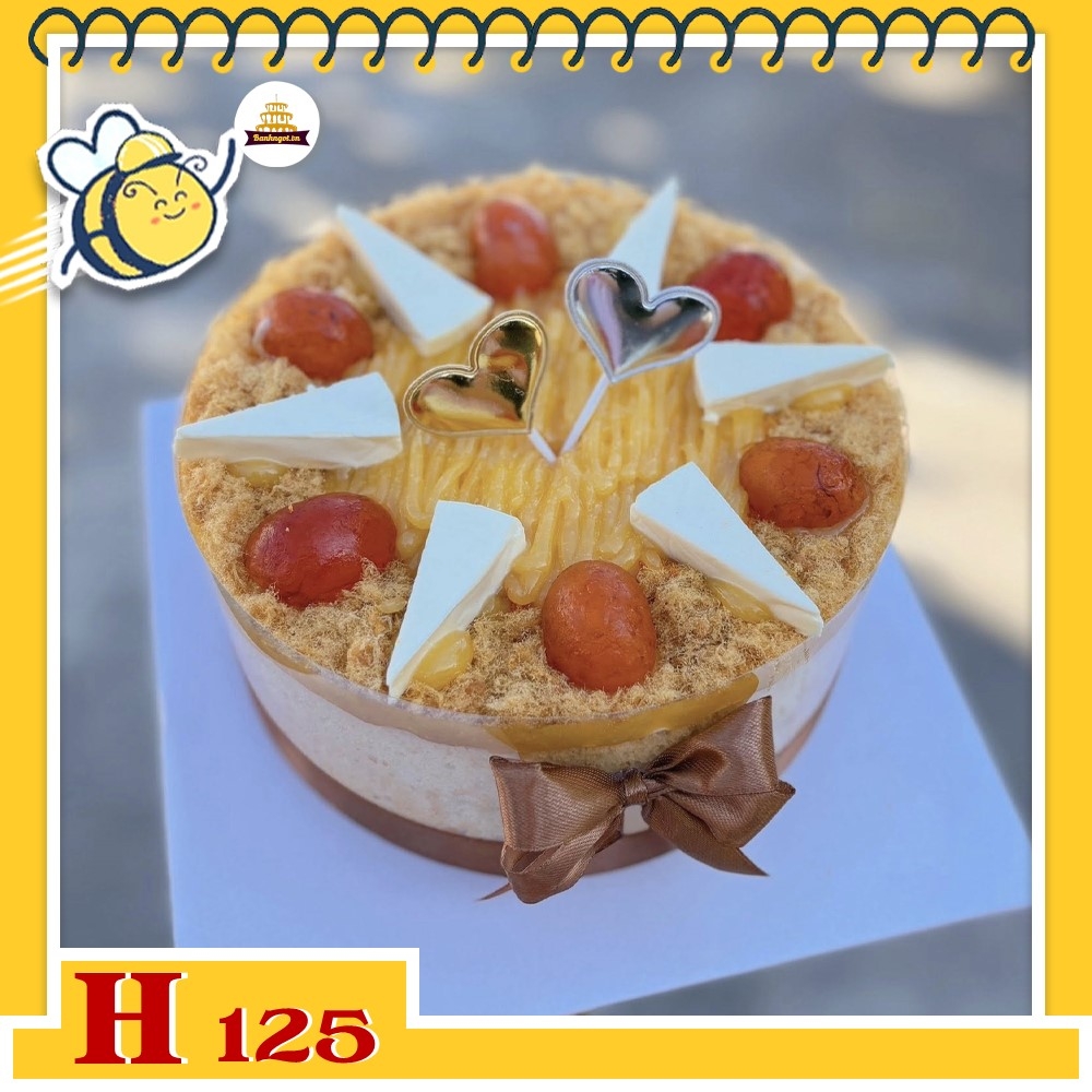 Bánh sinh nhật bông lan trứng muối H125 đơn giản, phô mai và tim lãng mạn