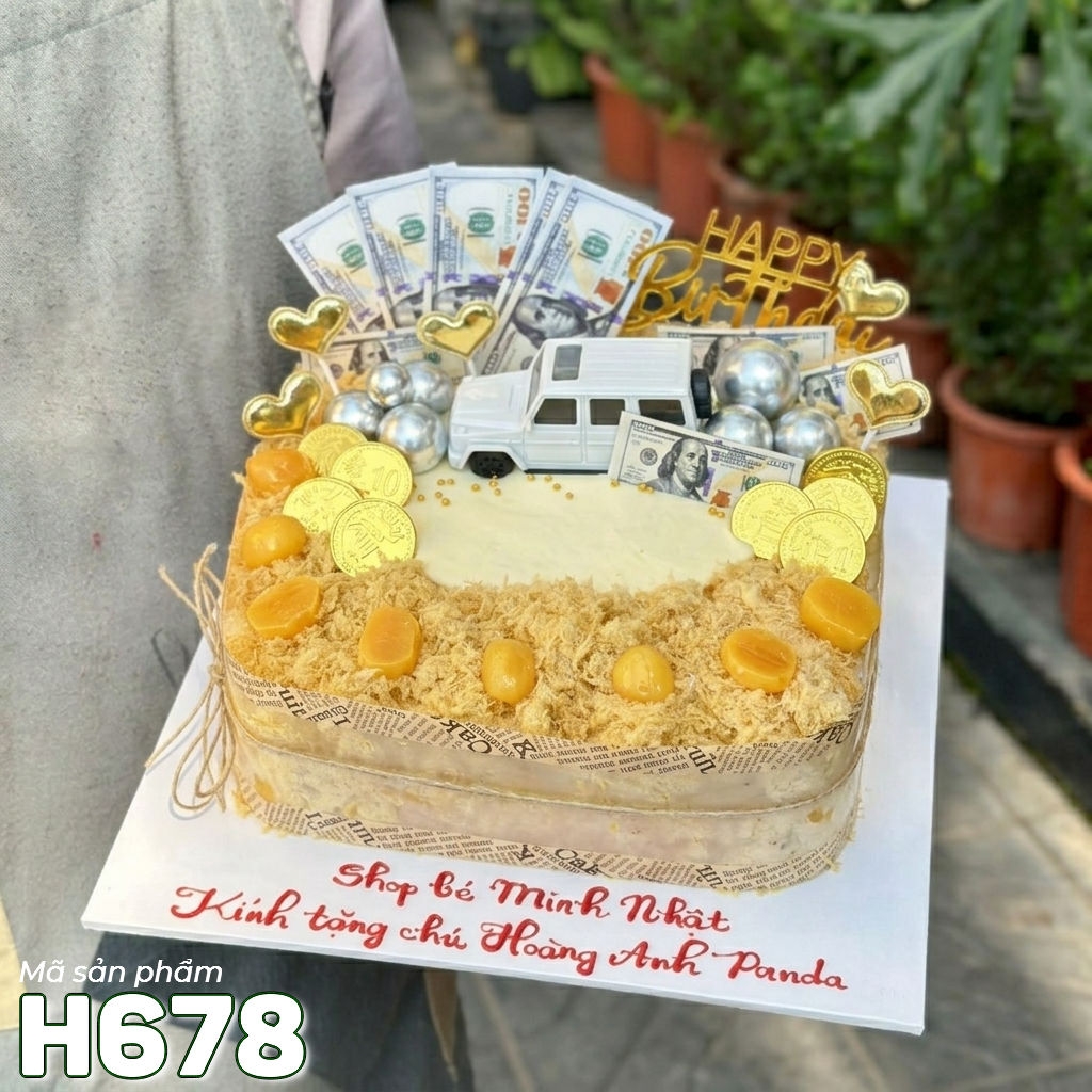 Bánh sinh nhật bông lan trứng muối H678 xế xịn và đô la tài lộc
