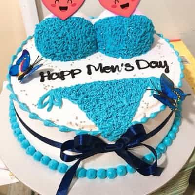 Bánh kem sinh nhật H335 tặng chồng màu xanh nước biển viền kem trắng