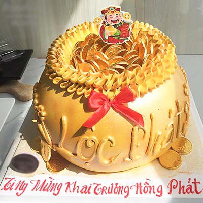 Mẫu bánh sinh nhật khai trương hình túi vàng độc đáo ở huyện Giao Thủy (Nam Định)