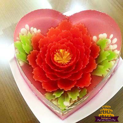 Đối với mẫu bánh gato thạch hình trái tim là mẫu bánh thích hợp để dành tặng cho người yêu hay crush của bạn. Chiếc bánh được làm theo khuôn hình trái tim, bên ngoài chiếc bánh được trang trí bằng hoa hay bằng những trái tim nhỏ thể hiện tình cảm bạn dành cho người ấy.