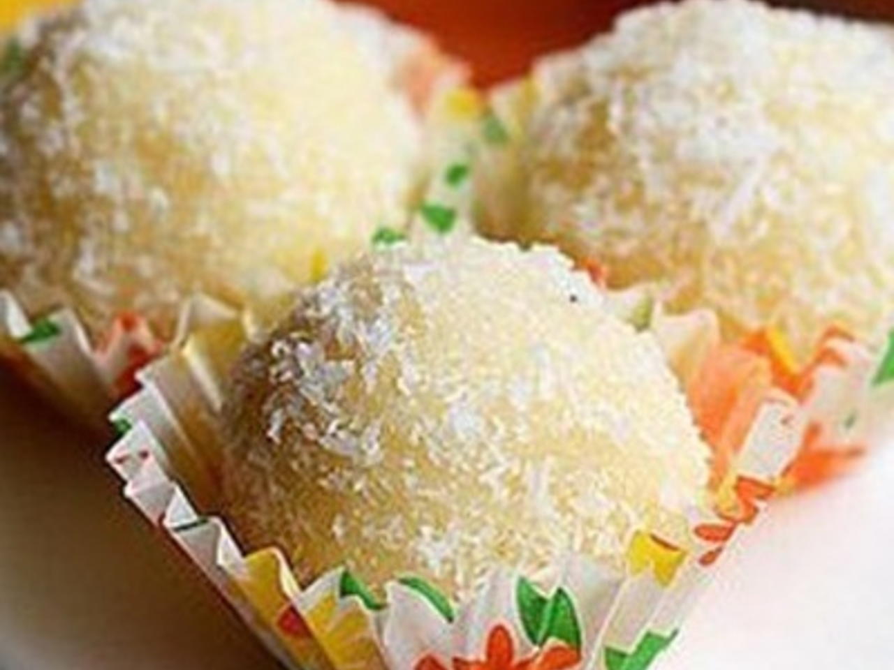 Sau đó: Tắt bếp, để cho hỗn hợp nguội hơi âm ấm rồi lấy 1 ít vo thành viên hình tròn kích thước cỡ bằng quả bóng bàn --> Lăn nhẹ qua lớp cơm dừa, trong khi lăn bạn nhớ hơi ấn nhẹ để lớp dừa bám dính vào mặt chiếc bánh --> Làm tương tự các viên bánh còn lại đến khi hết.