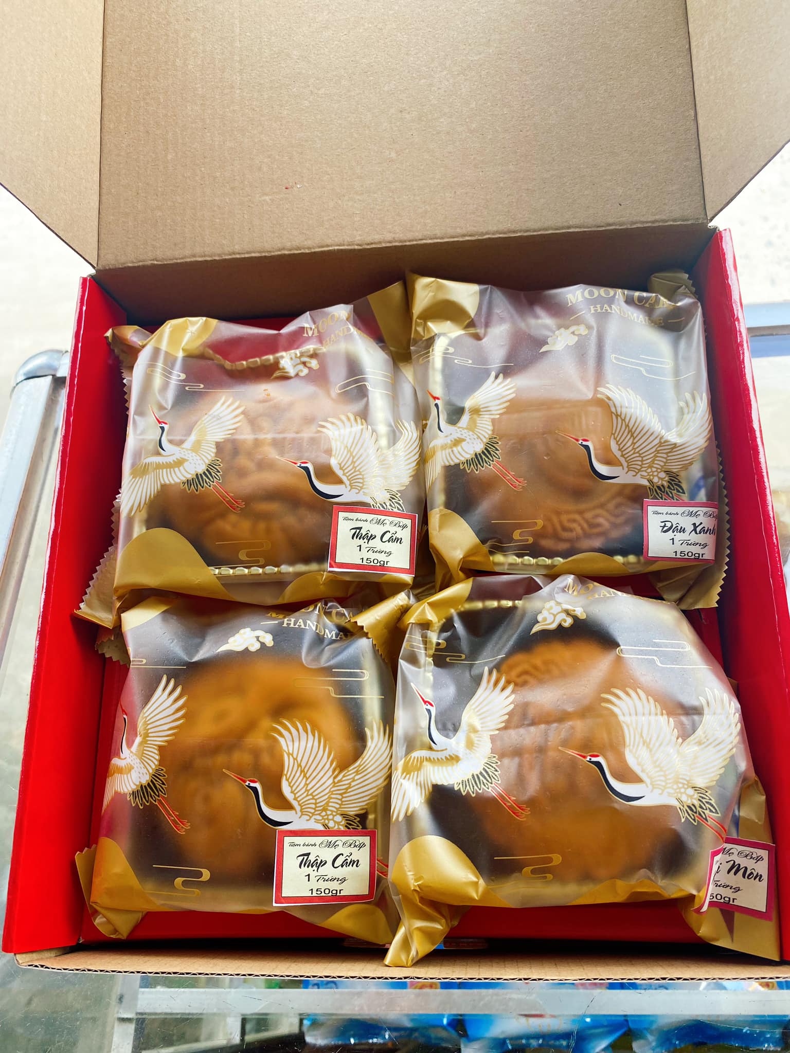 | Bánh trung thu nhà làm. - Thập cẩm 1 trứng 150gr 80k - Đậu xanh 1 trứng 150gr 60k - Khoai môn 1 trứng 150gr 60k Bánh trung thu hạt sen 70k 1 trứng 160gr Bánh trung thu thập cẩm 80k 1 trứng 160g Bánh trung thu đậu xanh 60k 1 trứng 160g Bánh trung thu khoai môn 60k 1 trứng 160g |
