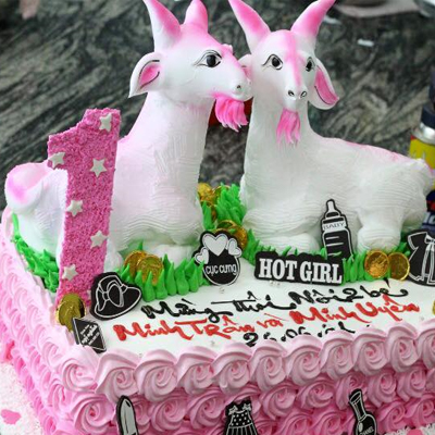 Bánh kem bắt hình thú nổi con dê sinh đôi