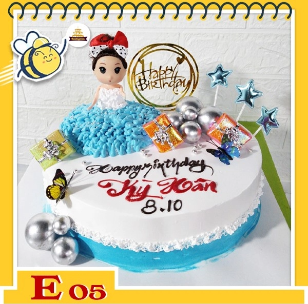 Bánh kem E23 sinh nhật bé gái búp bê váy cánh hoa hồng giá rẻ