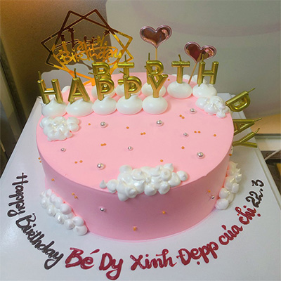 Bánh kem sinh nhật đơn giản A19 màu hồng viền trắng xung quanh ghi chữ màu trắng phong cách Hàn Quốc