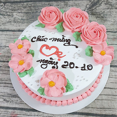 Bánh kem sinh nhật đơn giản A23 vườn hoa xinh đẹp màu đỏ hồng trắng kết hợp hài hòa