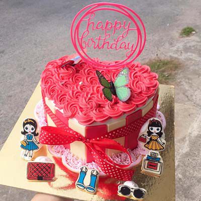 Bánh kem L21 màu hồng vẽ hình dễ thương cute tặng bạn thân