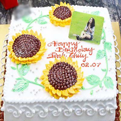 Bánh kem E68 hoa hướng dương màu vàng rực rỡ may mắn