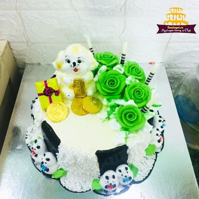 Bánh kem CV111 sinh nhật tuổi Tuật hình con chó trắng cute