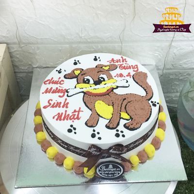 Bánh kem CV118 sinh nhật tuổi Tuật vẽ hình con chó nâu đáng iu