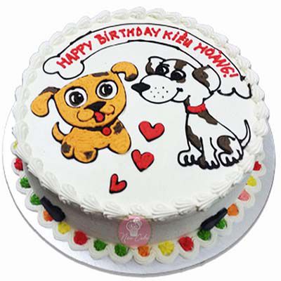 Những chú chó được vẽ các tư thế, động tác hết sức đáng yêu làm xiêu lòng bất cứ ai. Đôi khi người yêu bạn cũng đã quá quen thuộc với những mẫu bánh kem socola hình trái tim rồi nên bạn hoàn toàn có thể thử mẫu bánh kem in hình con chó tình yêu tặng bạn trai mình.