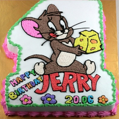 Tiếp tục là một mẫu bánh sinh nhật hình mặt chuột Jerry tinh nghịch vô cùng độc đáo. Chú chuột Jerry quá đỗi quen thuộc với không chỉ các bé mà còn là người lớn, vì vậy bạn hoàn toàn có thể tặng bánh sinh nhật hình chú chuột Jerry cho cả anh trai chị gái bạn nếu đó là nhân vật mà họ yêu thích.