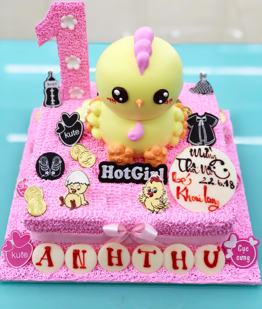 Đầu tiên, nếu đang cần đặt bánh sinh nhật cho bé gái tuổi gà hình gà con cho bé gái, bạn nên ưu tiên những chiếc bánh với tạo hình bé gà ngoan hiền, nữ tính.