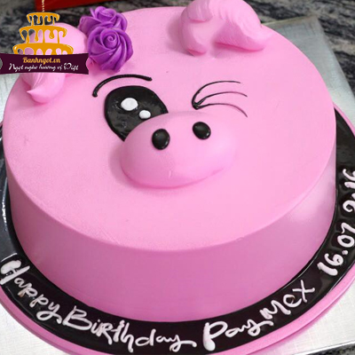 Bánh kem CV128 sinh nhật tuổi Hợi hình con heo màu hồng xinh iu
