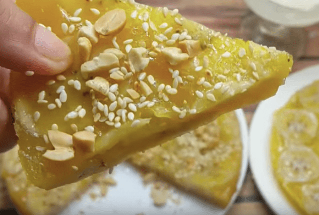 Công thức bánh chuối nướng giúp bạn có được món bánh ngon mê ly. Bên ngoài bánh chuối nướng được bao bọc bởi vỏ nếp, sau khi nướng lên vỏ nếp ngả vàng, khi thưởng thức sẽ lắng nghe âm thanh giòn rụm. Miếng bánh thơm ngon khiến các thực khách ăn một bánh chuối chiên lại muốn ăn bánh tiếp theo.