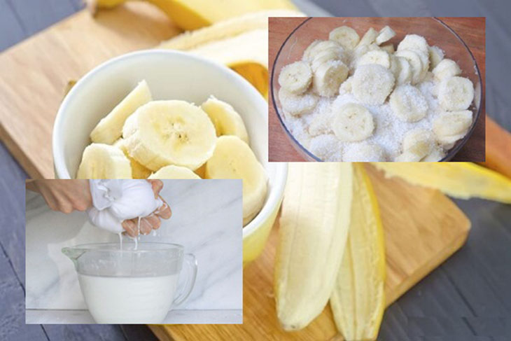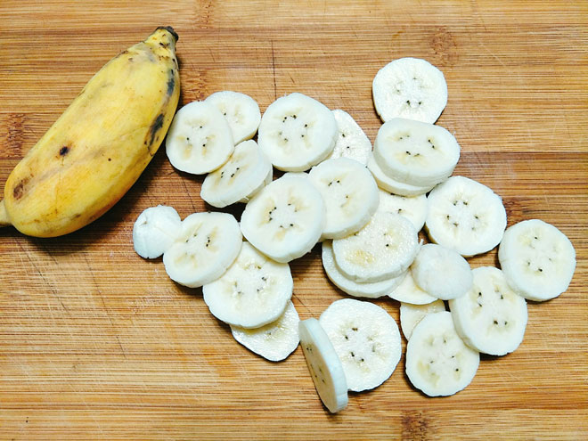 Với công thức bánh chuối thơm ngon phụ thuộc rất lớn vào các nguyên liệu thành phần. Chuối được tuyển chọn từ những quả chuối thơm và chất lượng. Sau đó tiến hành lột vỏ chuối, cắt chuối làm đôi theo chiều dọc, sau đó cho bào túi ni lông để chuối dẹt.