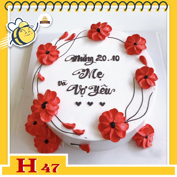 Bánh kem phụ nữ 20/10 H47 nền trắng vẽ hoa đỏ chưa bao giờ hết HOT