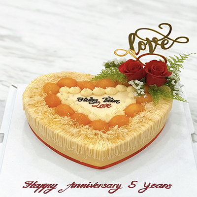 Sản phẩm được trang trí cùng tạo hình trái tim ngọt ngào, biểu tượng muôn đời của tình yêu chung thủy. Lớp chà bông, phô mai tươi phủ xuống, ôm trọn lấy cốt bông lan xốp mềm thật hấp dẫn. Nhân trứng muối béo bùi, không hề bị tanh hay quá mặn, vón cục. Lời yêu âu yếm sẽ thay bạn bày tỏ tình cảm chân thành đến người ấy. Hãy nhâm nhi chiếc bánh trong một không gian ấm cúng và cùng nhau chia sẻ những nỗi niềm! Dịp lễ kỉ niệm vì thế càng đáng trân trọng, khó quên.